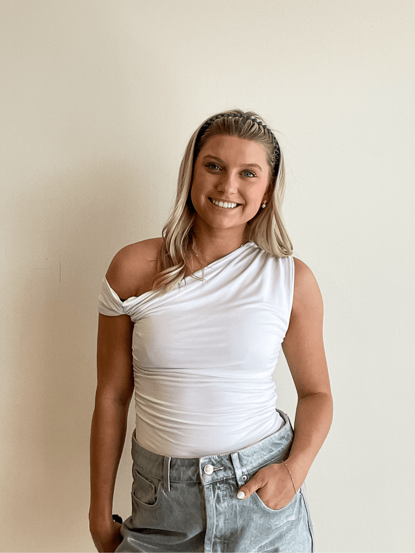 off the shoulder cuff sleeved top