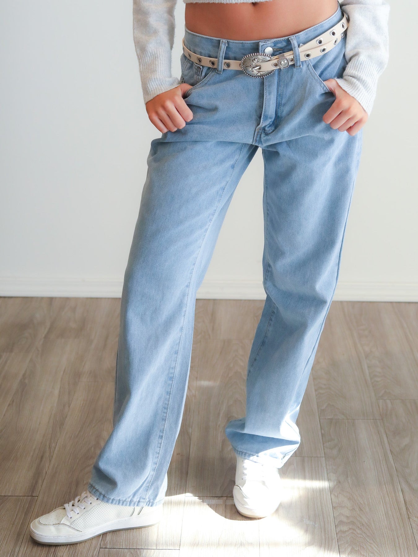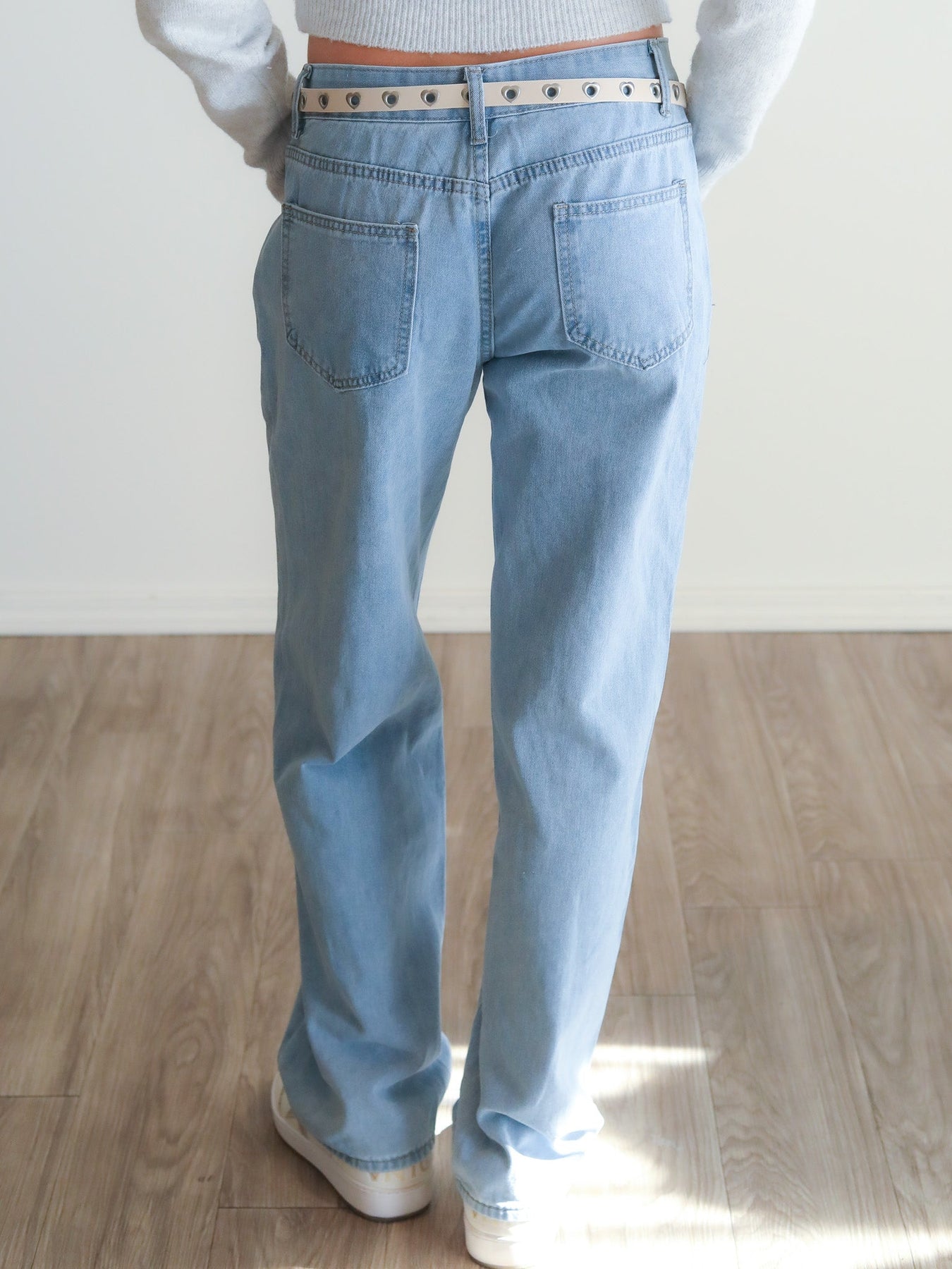These low rise jeans offer a loose straight-leg fit with a retro vibe. Their minimal wash and relaxed cut create a nostalgic yet effortlessly stylish everyday look.