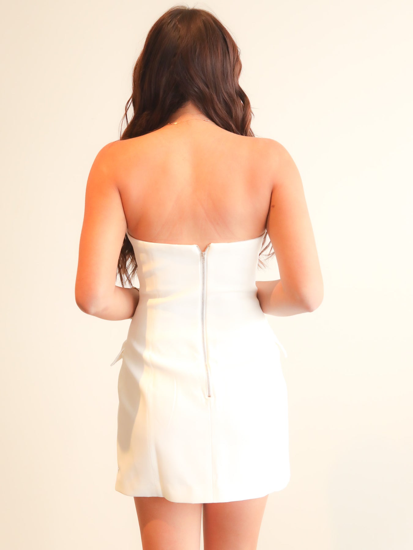 Embrace effortless elegance with this sculpted panel strapless dress, designed to flatter your silhouette with precision-cut panels that create a sleek, defined look. The strapless neckline offers a sophisticated, versatile style perfect for any occasion—from cocktail events to special celebrations. The structured bodice provides confident support while the sculpted detailing adds dimension and visual interest. Whether you're dressing up for a night out or making a statement at an event, this dress delivers timeless appeal with modern construction that makes you feel as good as you look.