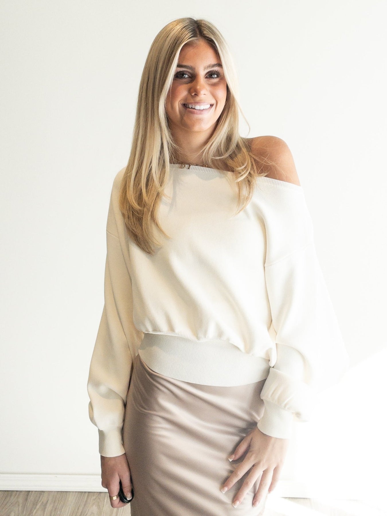 one shoulder waist band basic knit seater top
