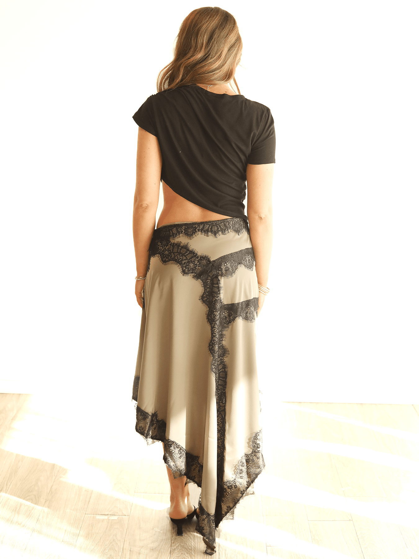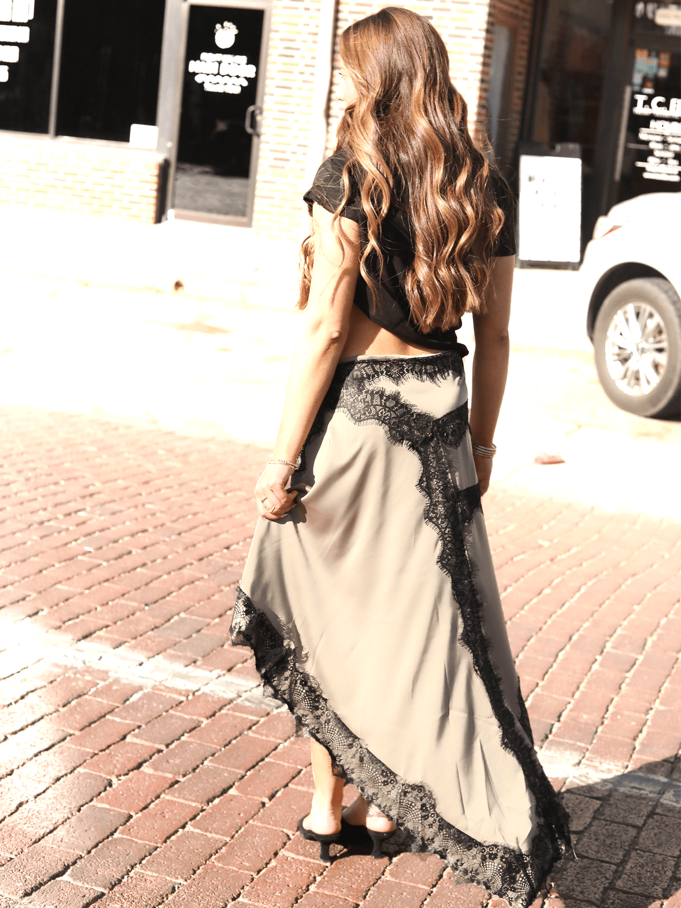 Flow effortlessly through your day in the 10,000 Waves Dress, a modern casual piece with soft movement and feminine detail. Designed with an asymmetrical silhouette, this dress features delicate lace trim that adds a subtle touch of elegance to its relaxed, wearable style. The fluid fabric drapes beautifully, creating a look that feels both effortless and refined.