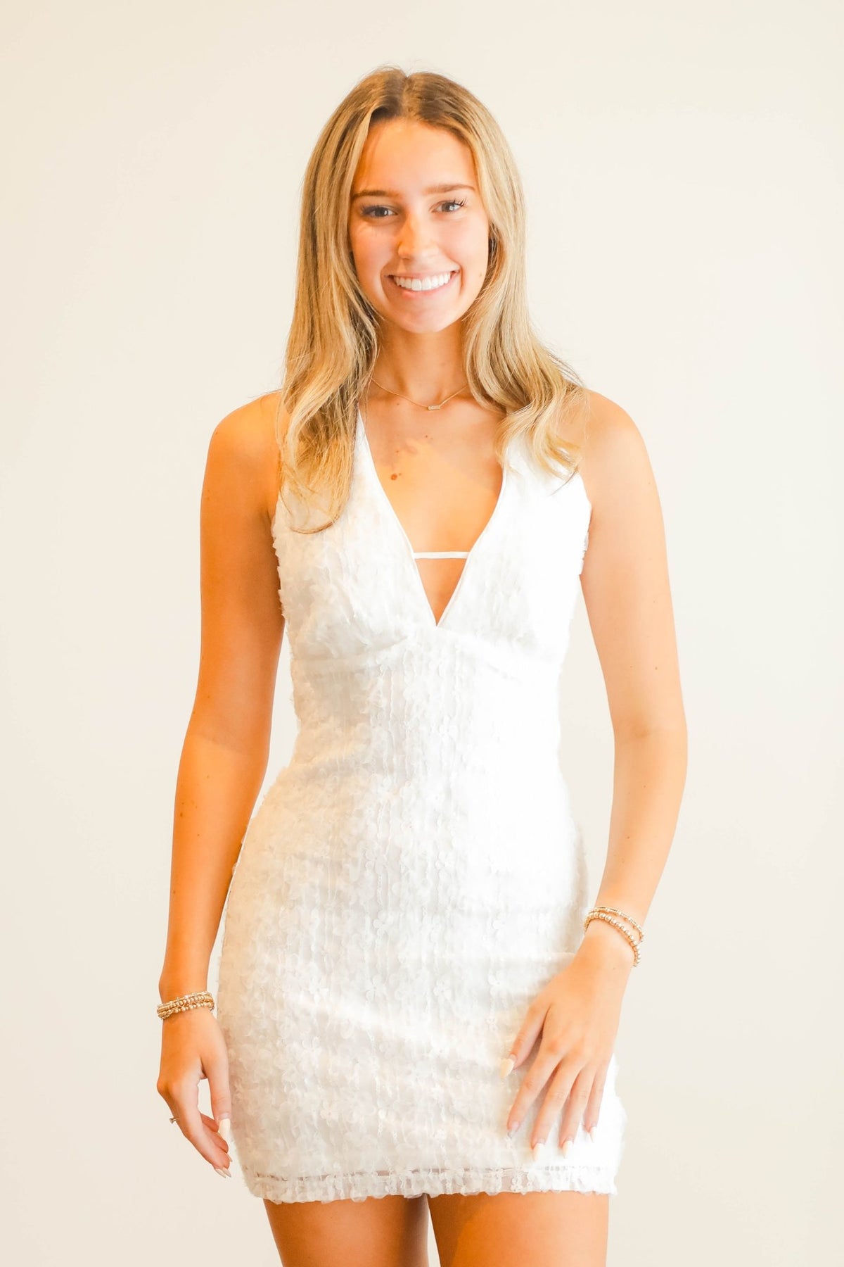 Elevate your style with this stunning white V-neck dress that effortlessly combines elegance and charm. Its flattering cut enhances your silhouette, making it perfect for any occasion where you want to stand out with confidence.