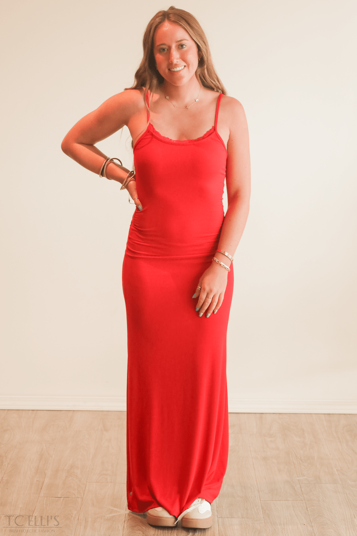 Embrace effortless elegance with the From Head to Doze Dress. Crafted from soft ribbed fabric, this maxi slip-on dress features delicate lace detailing at the front for a touch of subtle sophistication. Adjustable straps ensure a perfect, comfortable fit throughout the day and night. Whether lounging at home or stepping out, this dress blends comfort and style seamlessly.
