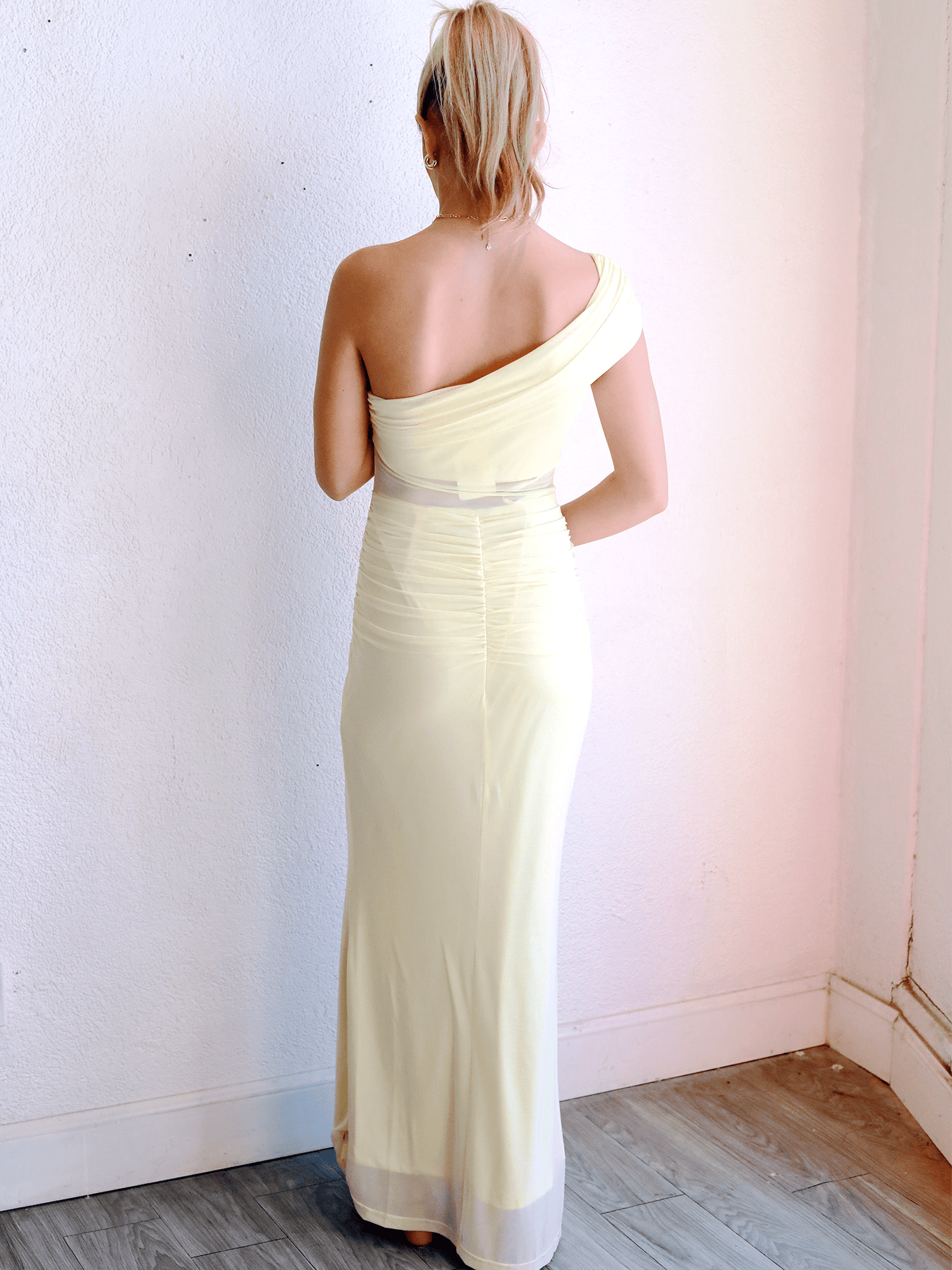 Turn heads and own the moment in the Hollywood Nights Dress — a striking maxi designed for unforgettable evenings. Featuring a bold one-shoulder sleeve on one side and a sleek sleeveless cut on the other, this dress creates a dramatic, modern silhouette.