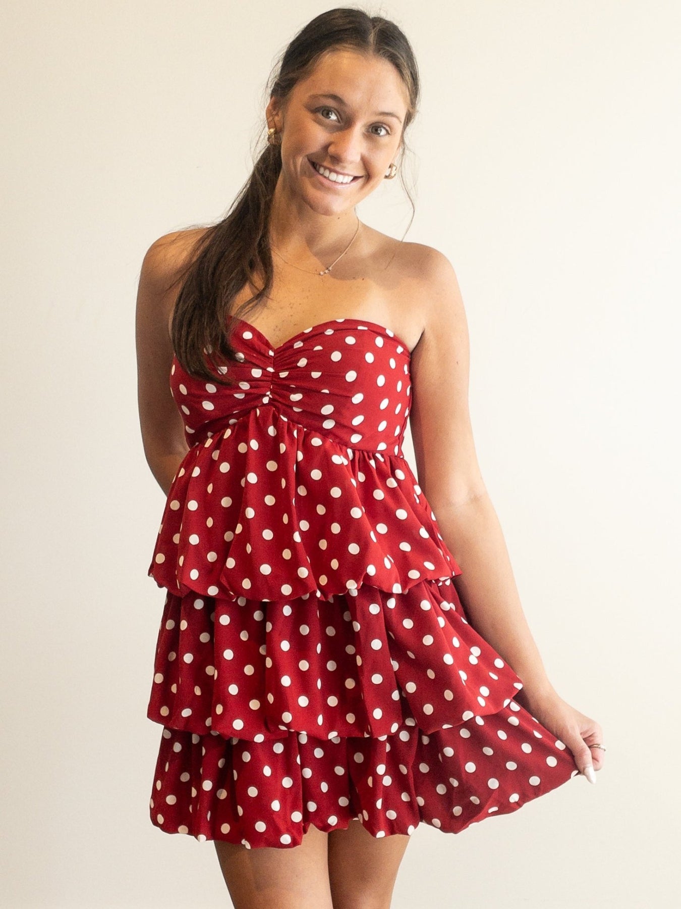 polka dot tiered bubble dress with sweetheart neck