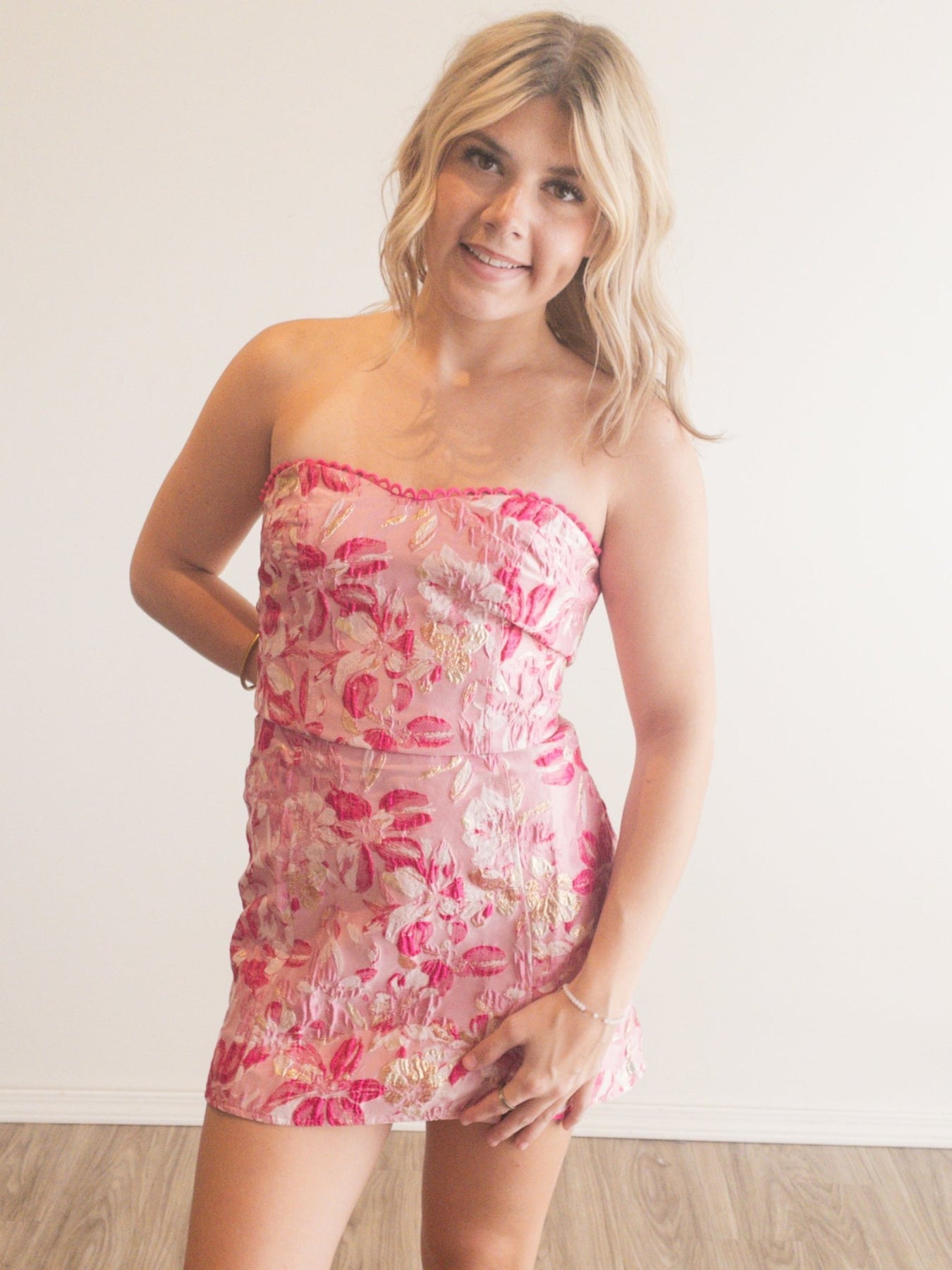 floral jacquard mini dress