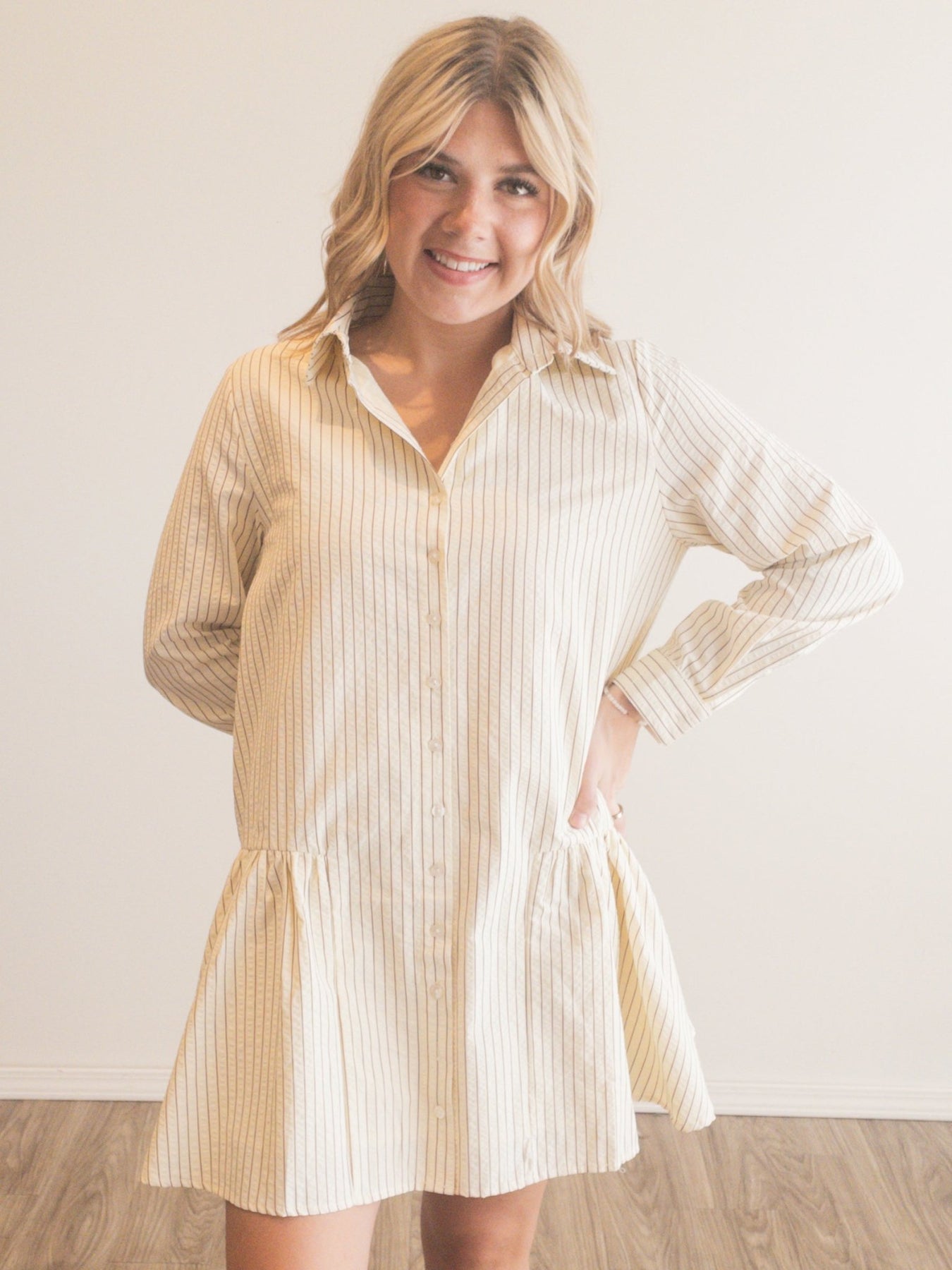 striped mini shirt dress