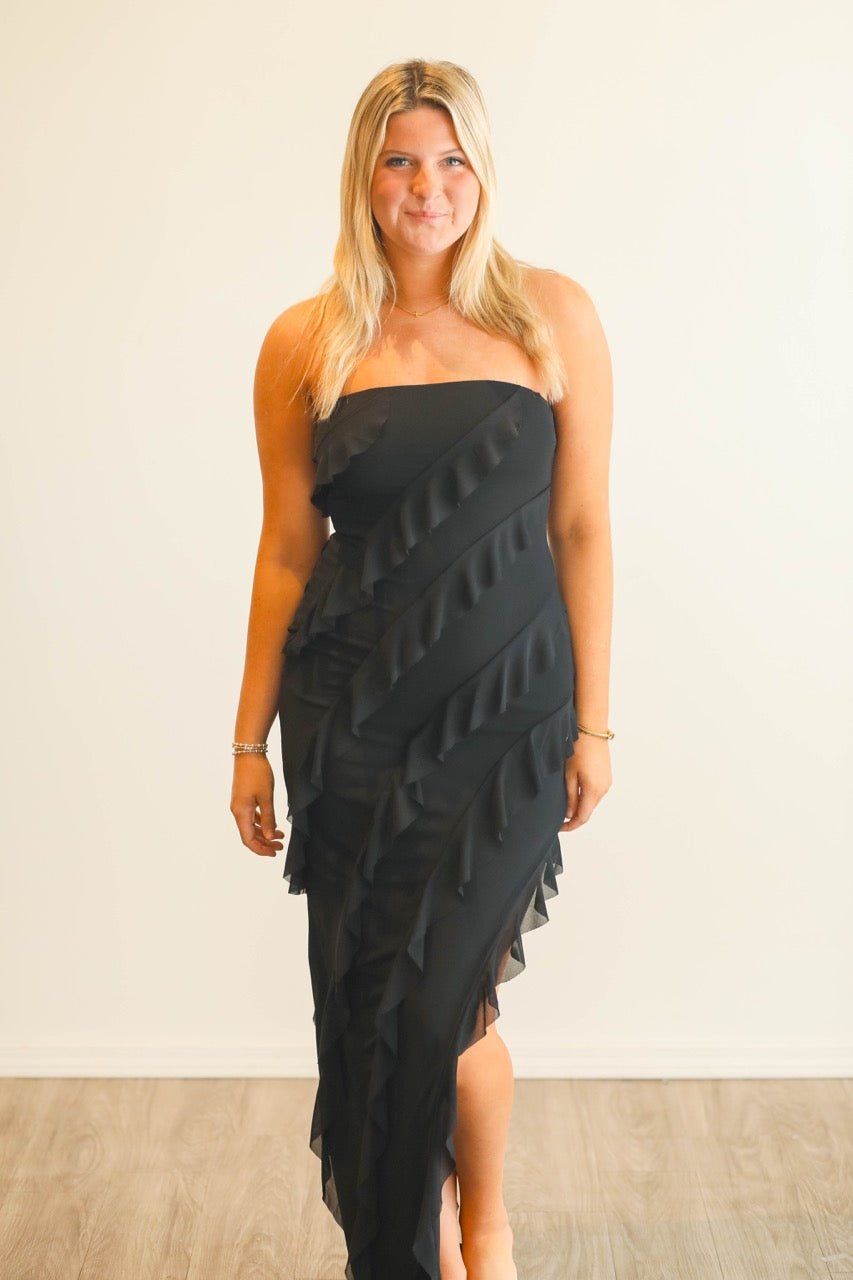 Elevate your style with the Pour It On Dress, featuring elegant tube mesh fabric and delicate frilled details. The stylish side slit adds a flirty touch and enhances movement, making it perfect for both day and night occasions. This dress combines comfort with sophisticated flair, ensuring you look effortlessly chic wherever you go.