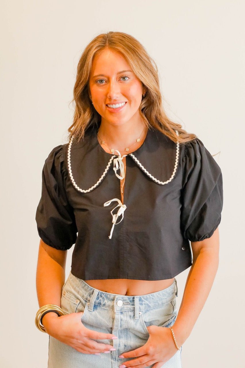Elevate your wardrobe with the Front Row Seat Top, featuring a charming scallop collar and elegant puff sleeves. This blouse combines timeless style with a flattering silhouette, perfect for making a statement at any occasion. Its delicate details add a touch of sophistication, ensuring you stand out effortlessly. Embrace comfort and chic design in one versatile piece that’s ideal for both workdays and weekend outings.