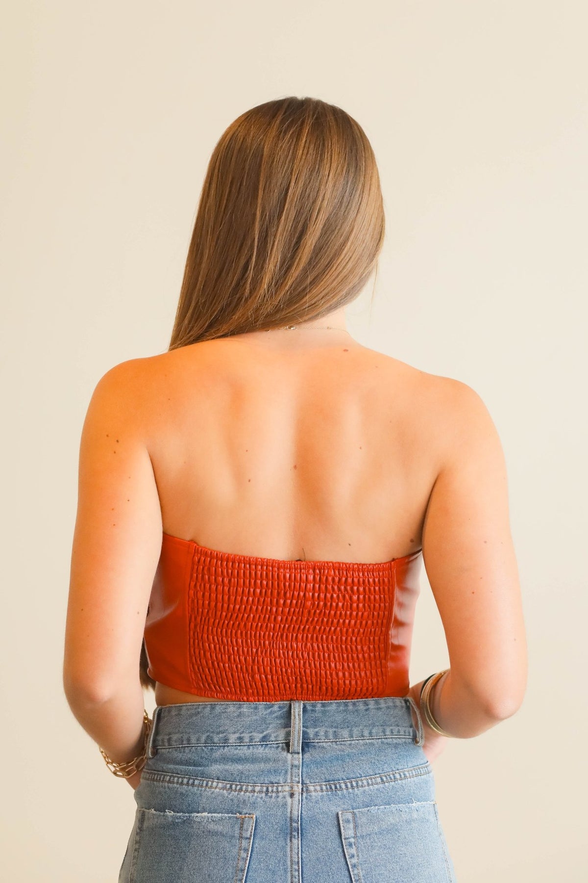 Elevate your style with the Time For Kickoff Top, a sleek leather tube top designed to turn heads. Its smooth, form-fitting silhouette offers a bold, confident look perfect for nights out or special events. Crafted for comfort and edge, this top pairs effortlessly with your favorite bottoms to create a standout outfit that commands attention. Step into the spotlight and make every moment unforgettable.