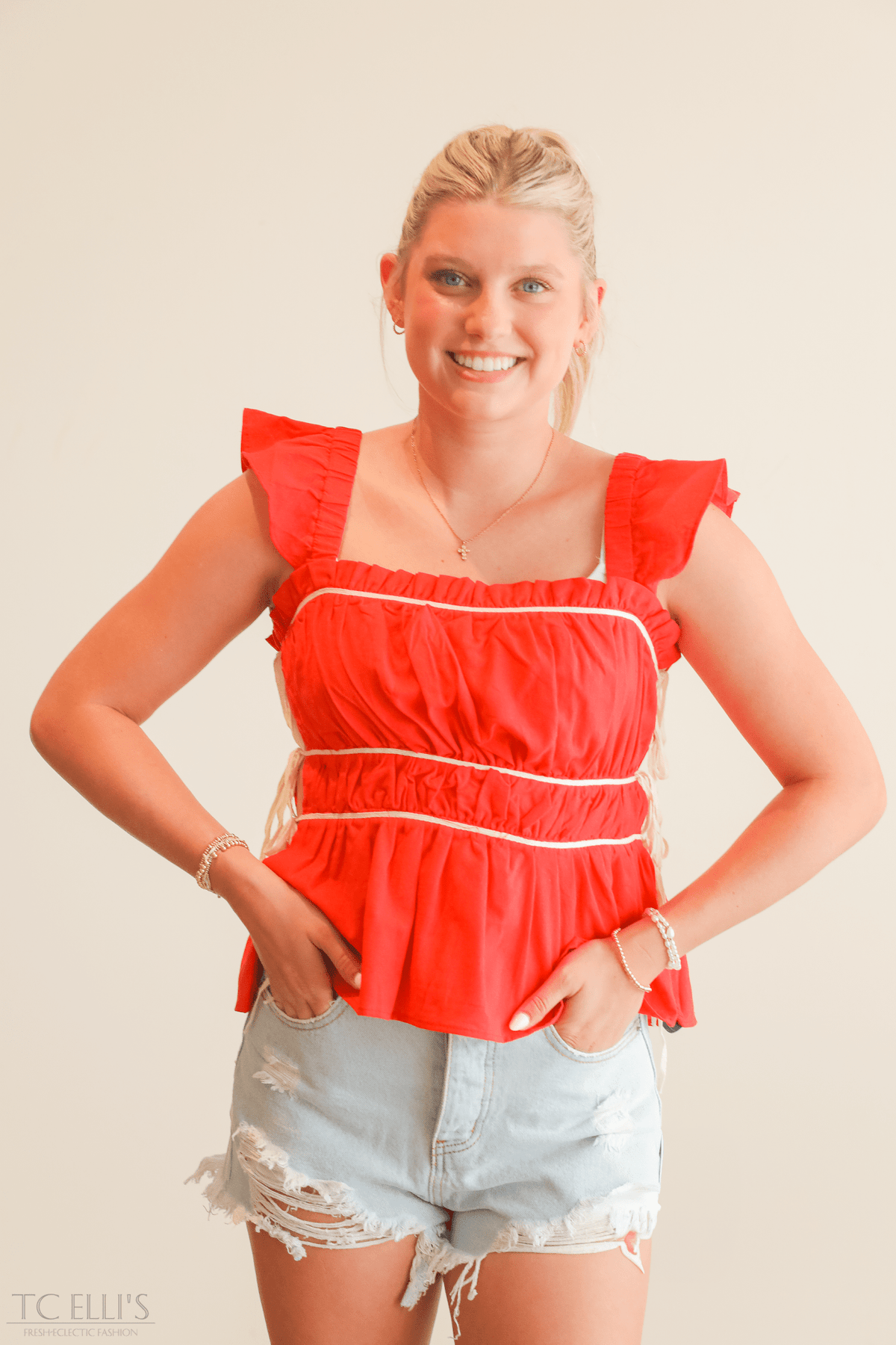 Elevate your style with the Way To My Heart Top, featuring elegant ruched details and charming ruffled straps that add a touch of femininity. This flattering design enhances your silhouette while providing a comfortable, breathable fit perfect for any occasion. Make a statement effortlessly with this beautifully crafted top that combines playful texture with versatile wearability.