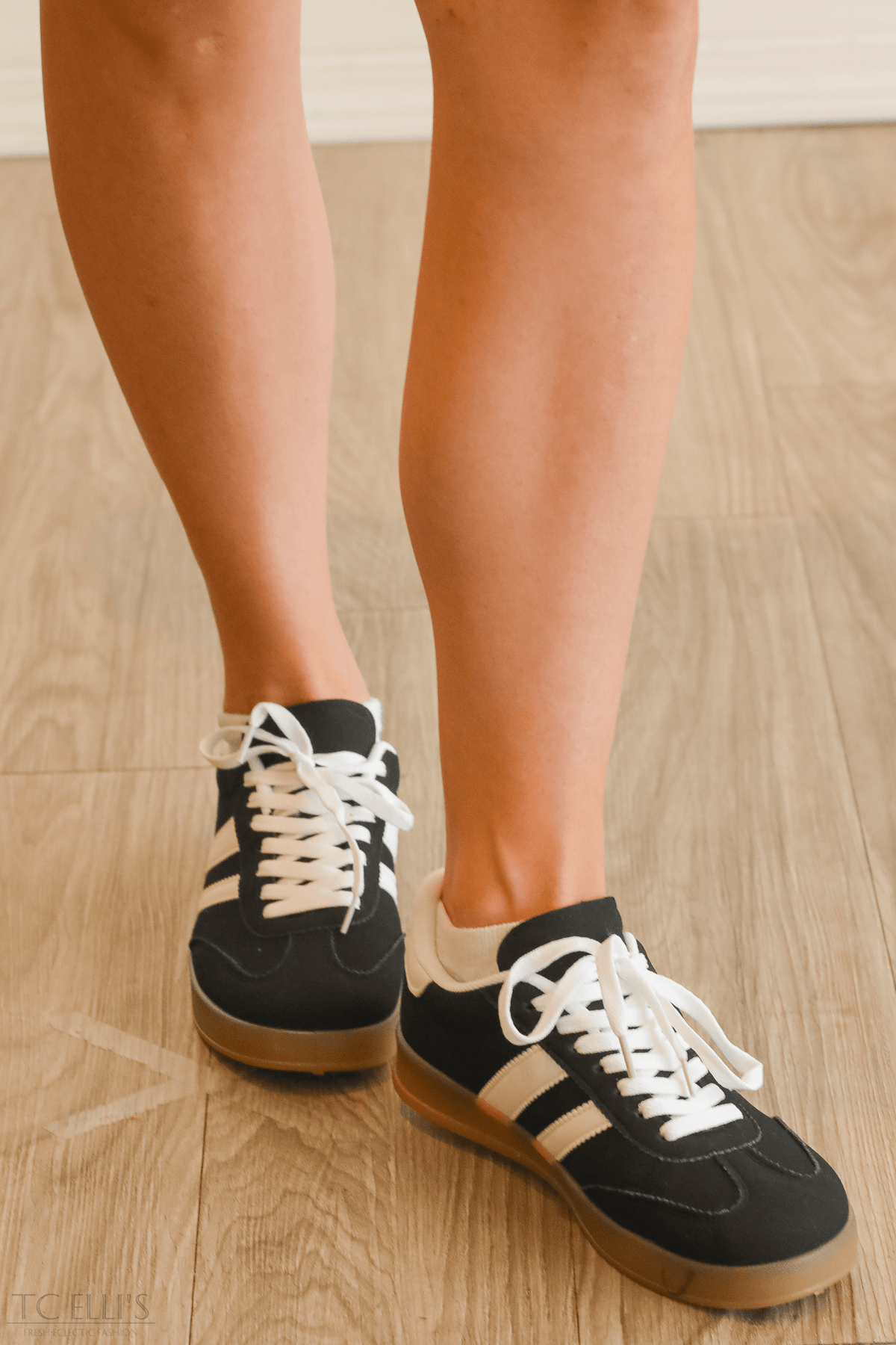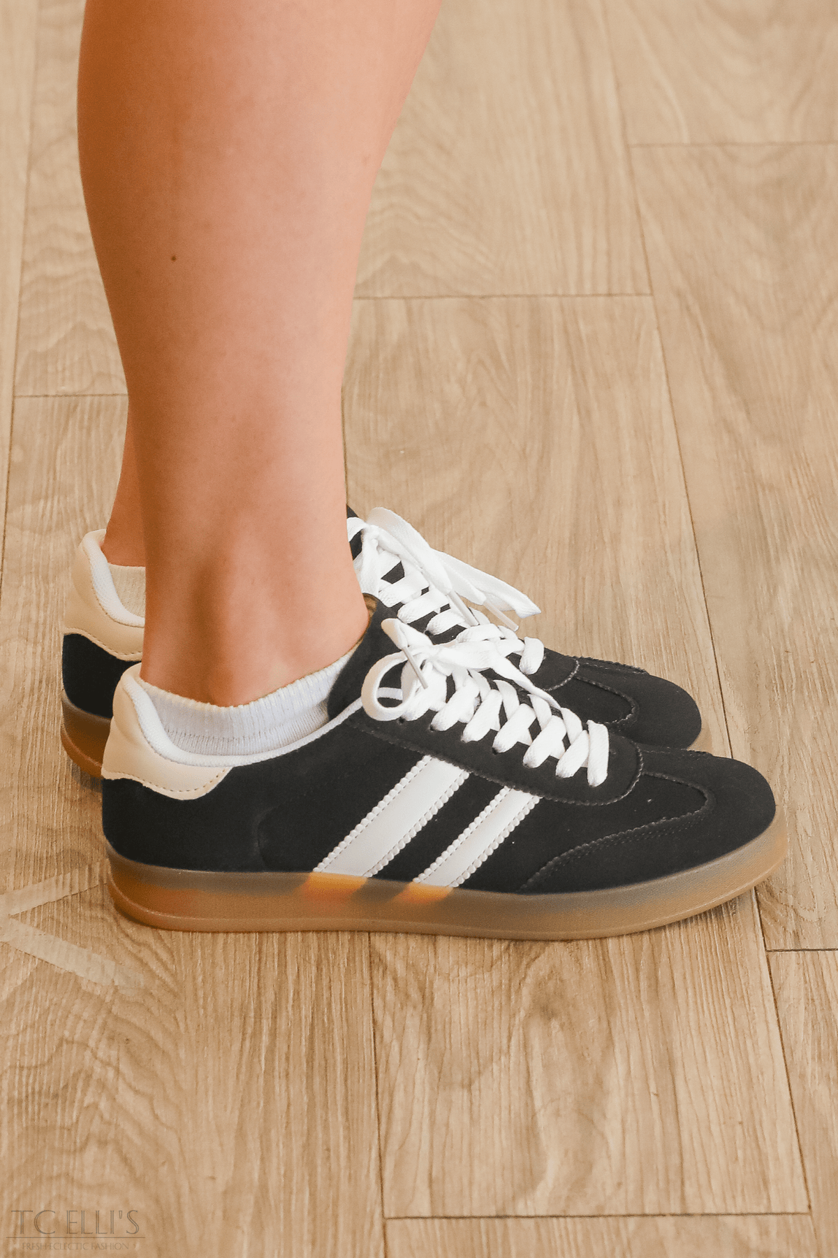 Step up your game with these Running Man Tennis Shoes, featuring a bold black and white striped design that makes every step a statement. Lightweight and comfy, they keep you moving swiftly whether you're hitting the court or the streets. Add a dash of playful flair to your sporty style with these eye-catching kicks!