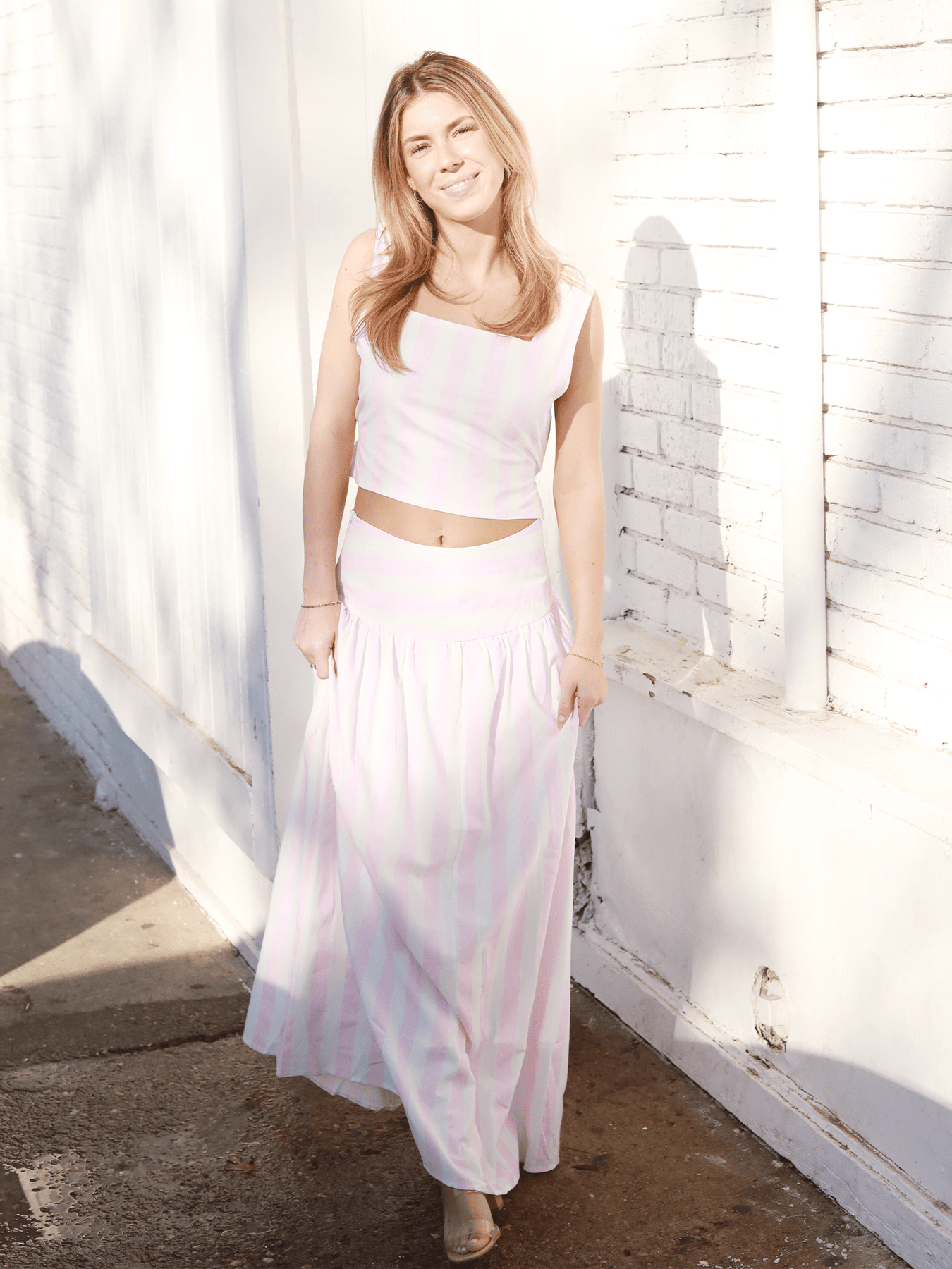 Sail into effortless elegance with our Yacht Cruise Set — the perfect blend of classic charm and modern sophistication. This coordinated set features a timeless striped design paired with a flattering mid-length A-line skirt that moves beautifully with every step.