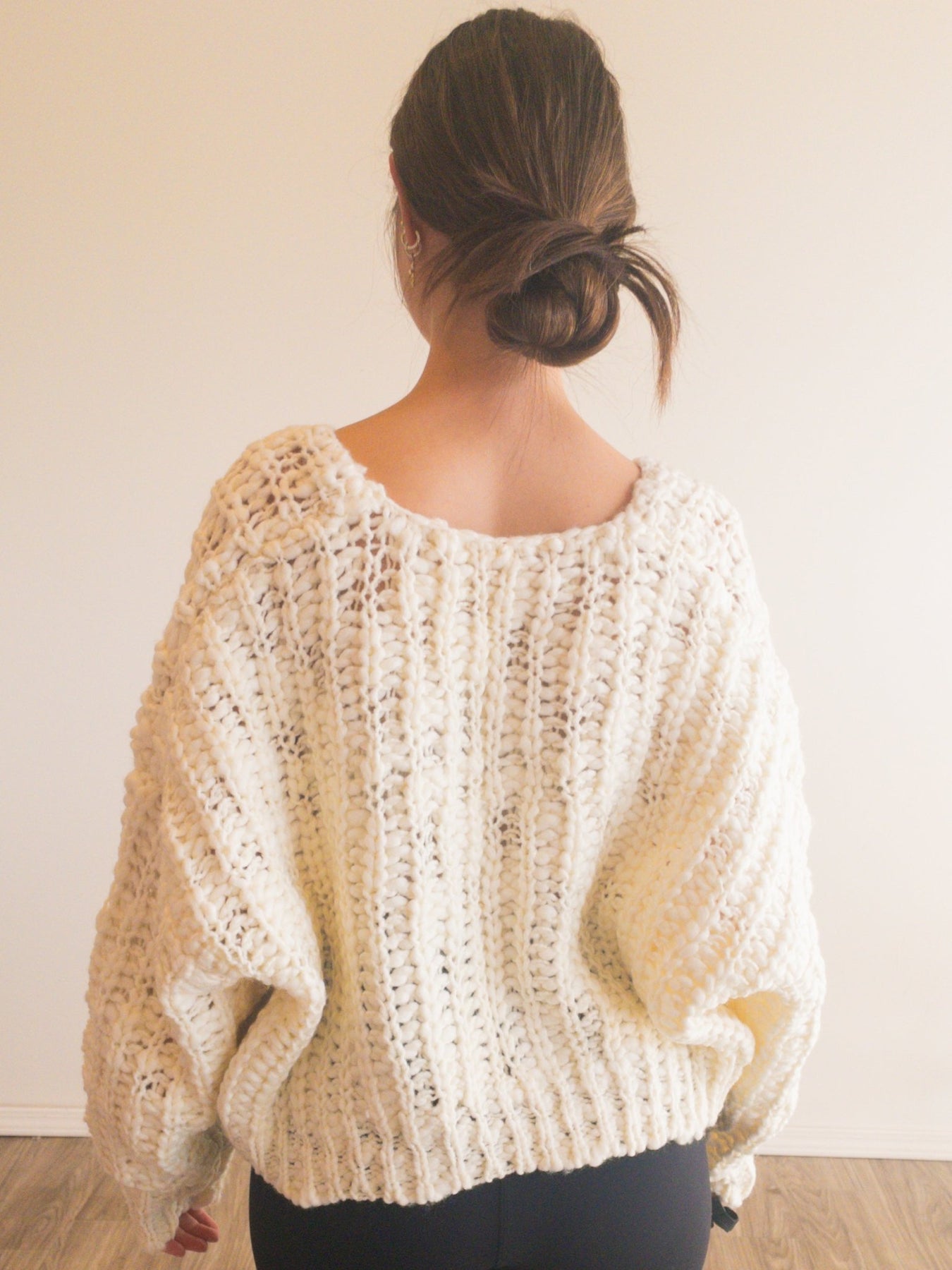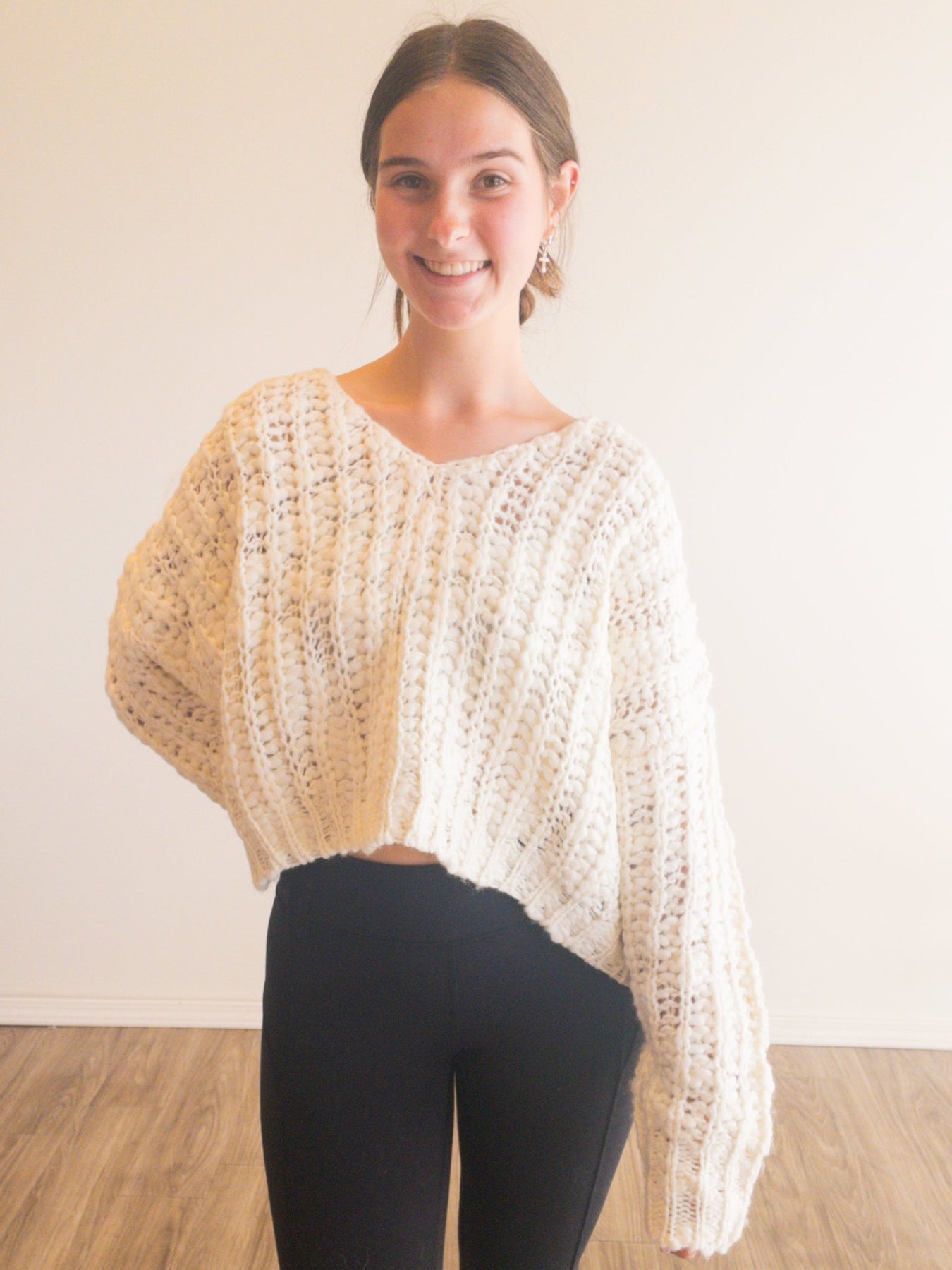 popcorn yarn v-neck cropped sweater