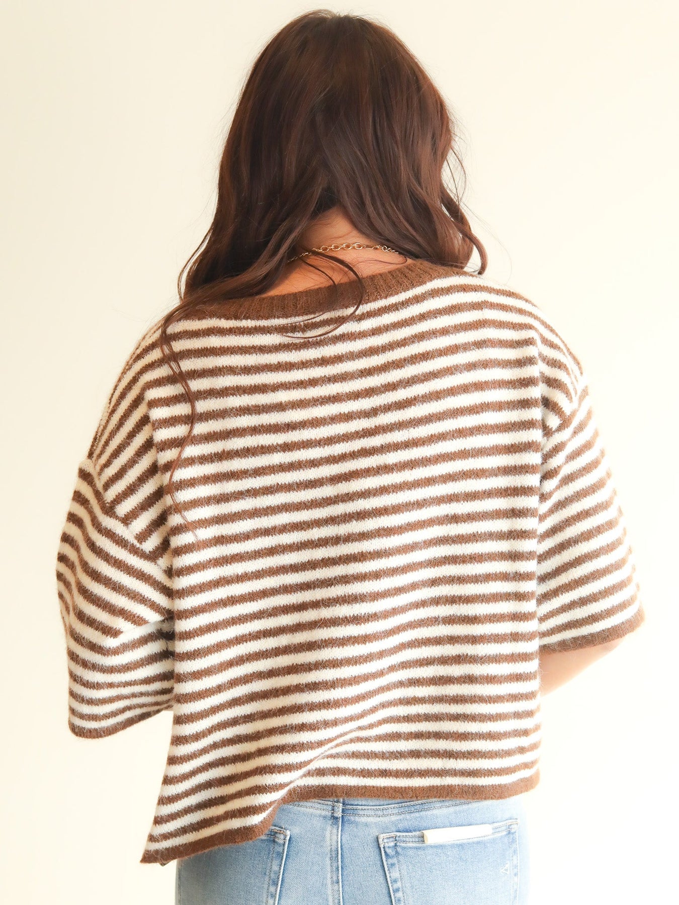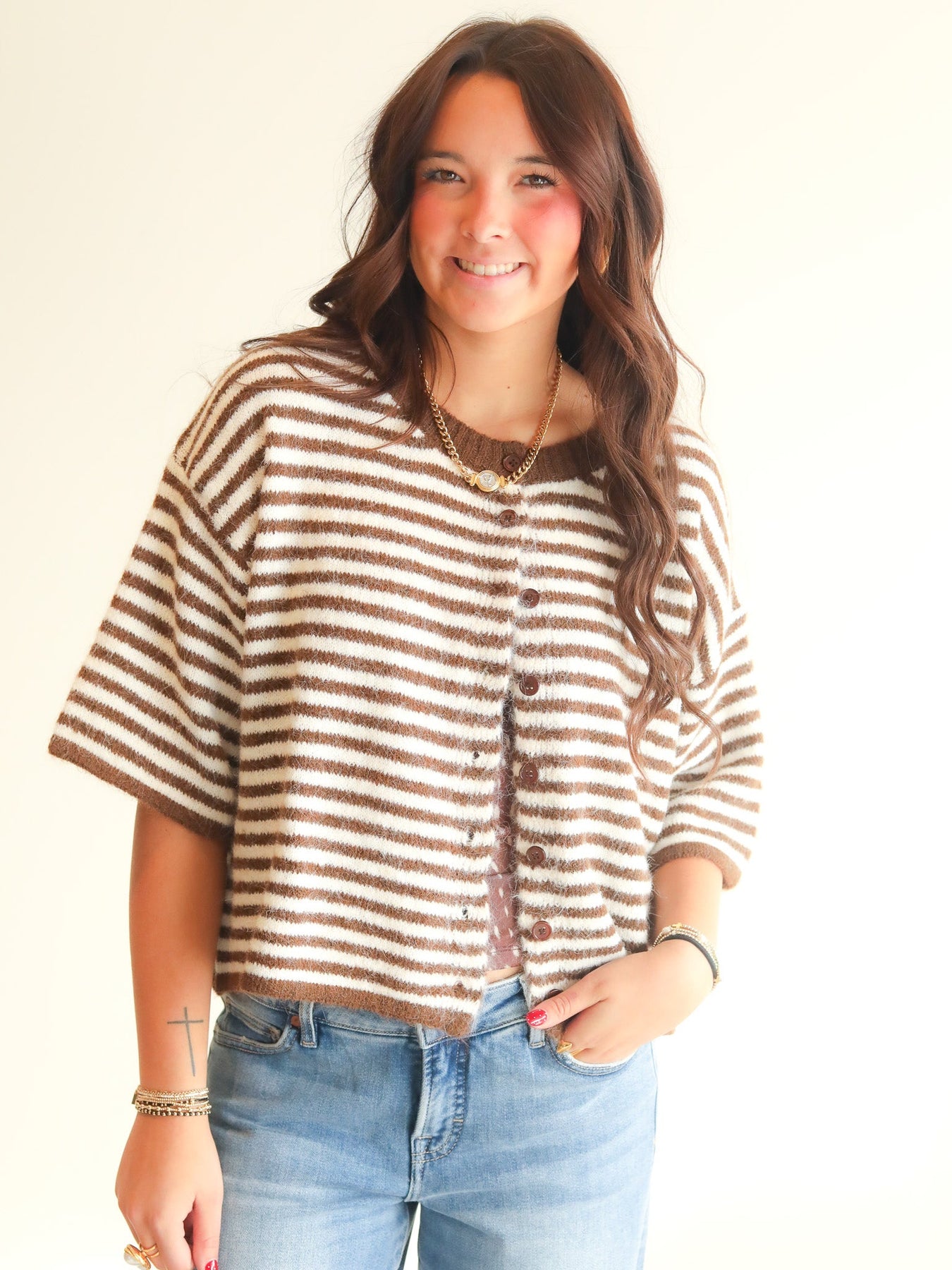 Elevate your everyday style with this striped cropped soft knit cardigan—the perfect layering piece for effortless sophistication. Crafted from luxuriously soft knit fabric, it drapes beautifully while maintaining its shape. The classic striped pattern adds visual interest to any outfit, while the cropped silhouette flatters your frame and pairs seamlessly with high-waisted bottoms, dresses, or tees. Whether you're heading to the office, meeting friends, or enjoying a casual day out, this versatile cardigan delivers comfort without compromising on style. A wardrobe essential that works as hard as you do.