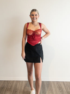 scalloped lace ribbed knit top