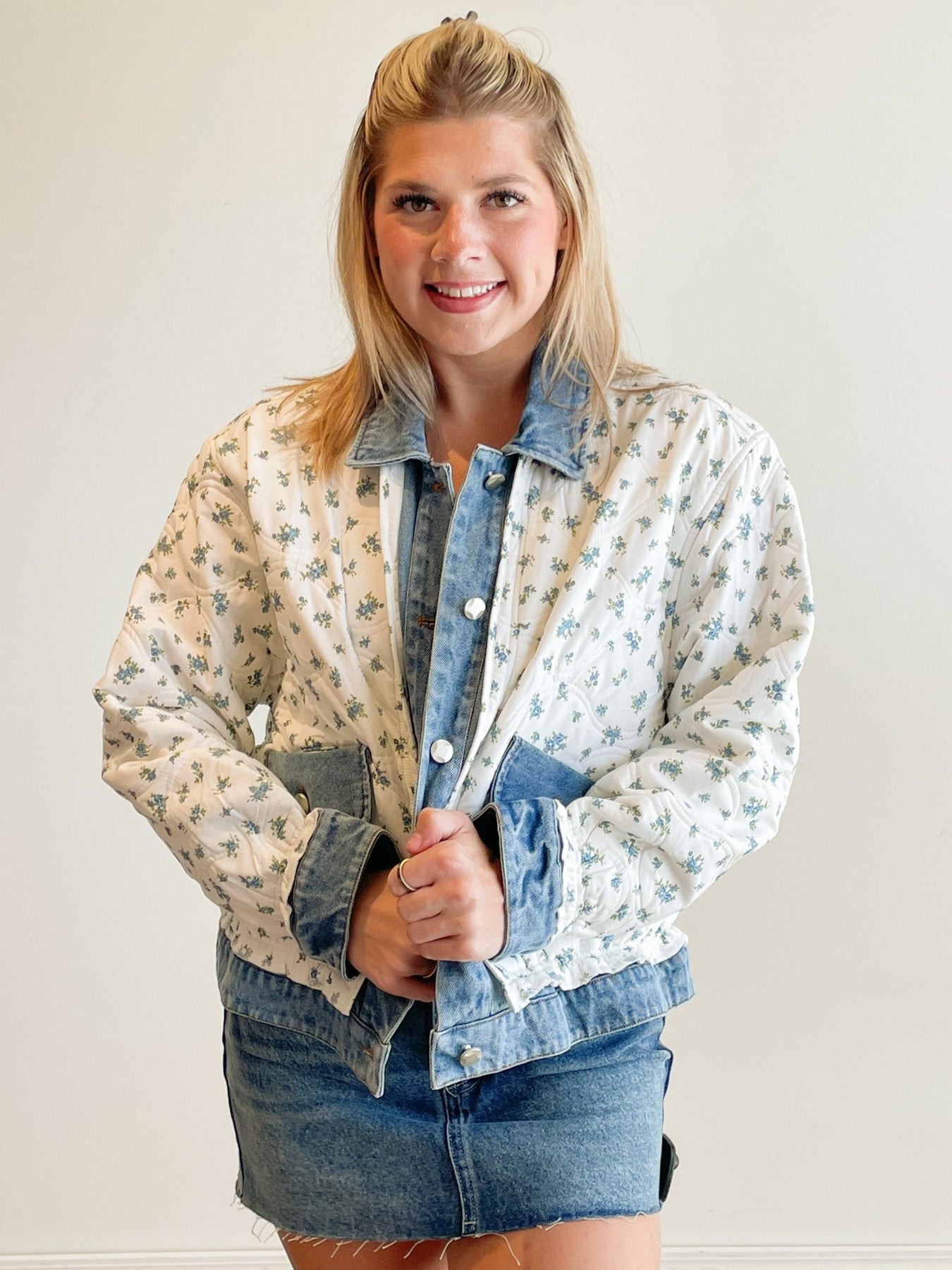 floral quilted denim trim jacket