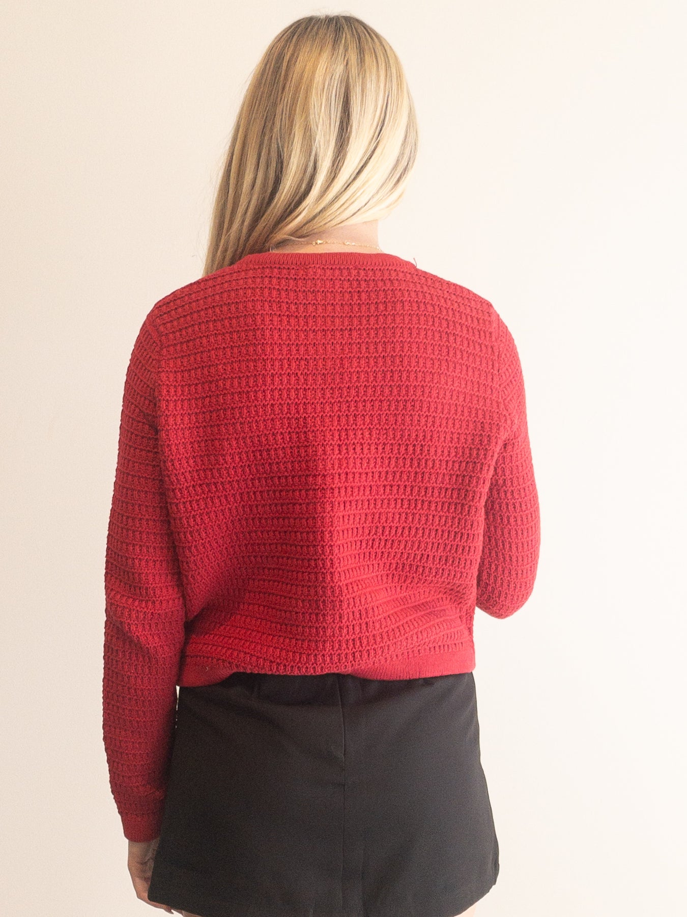 red sweater cardigan