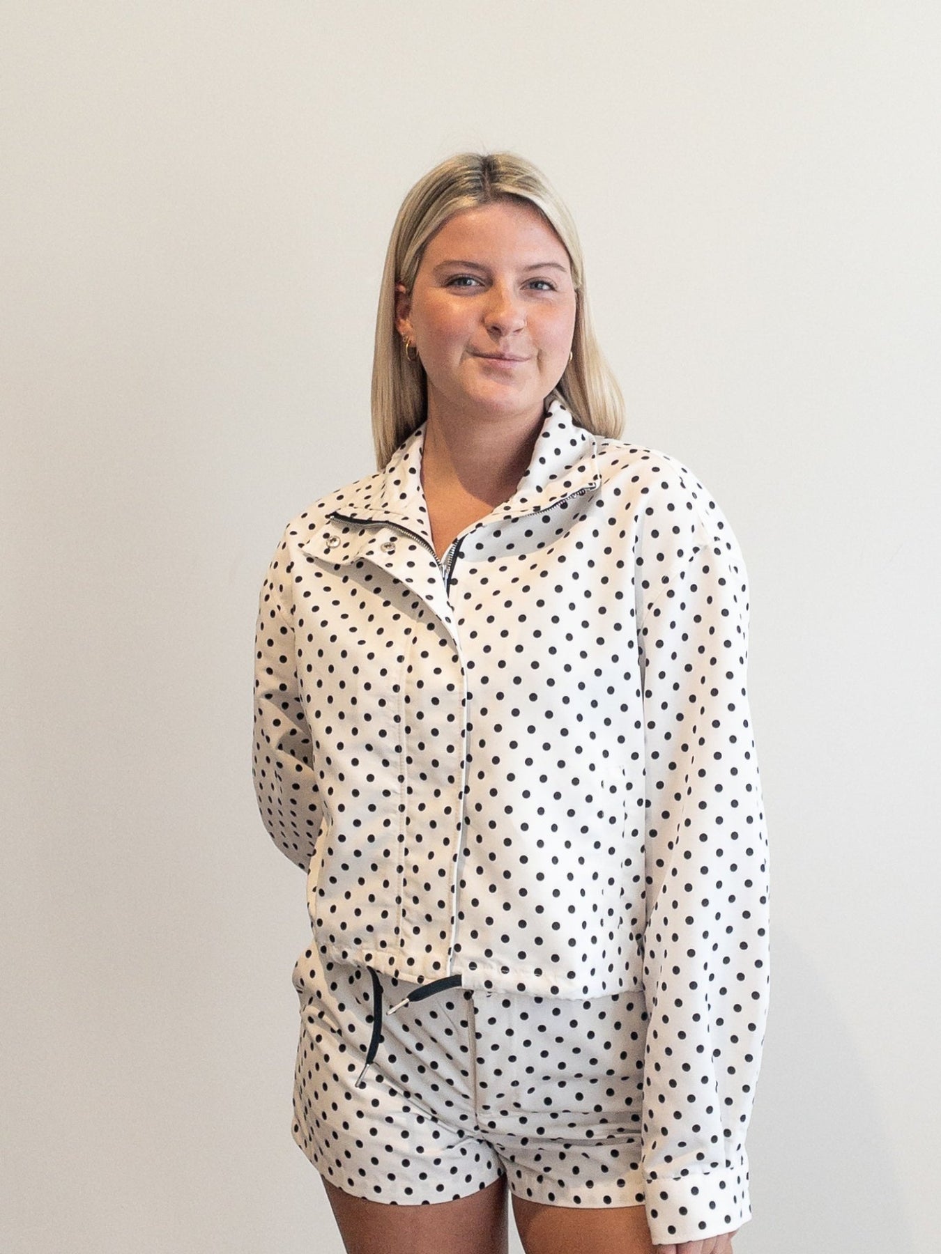polka dot jacket and short set