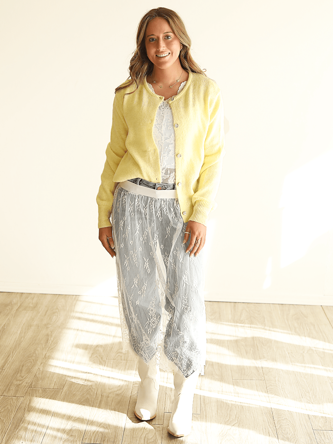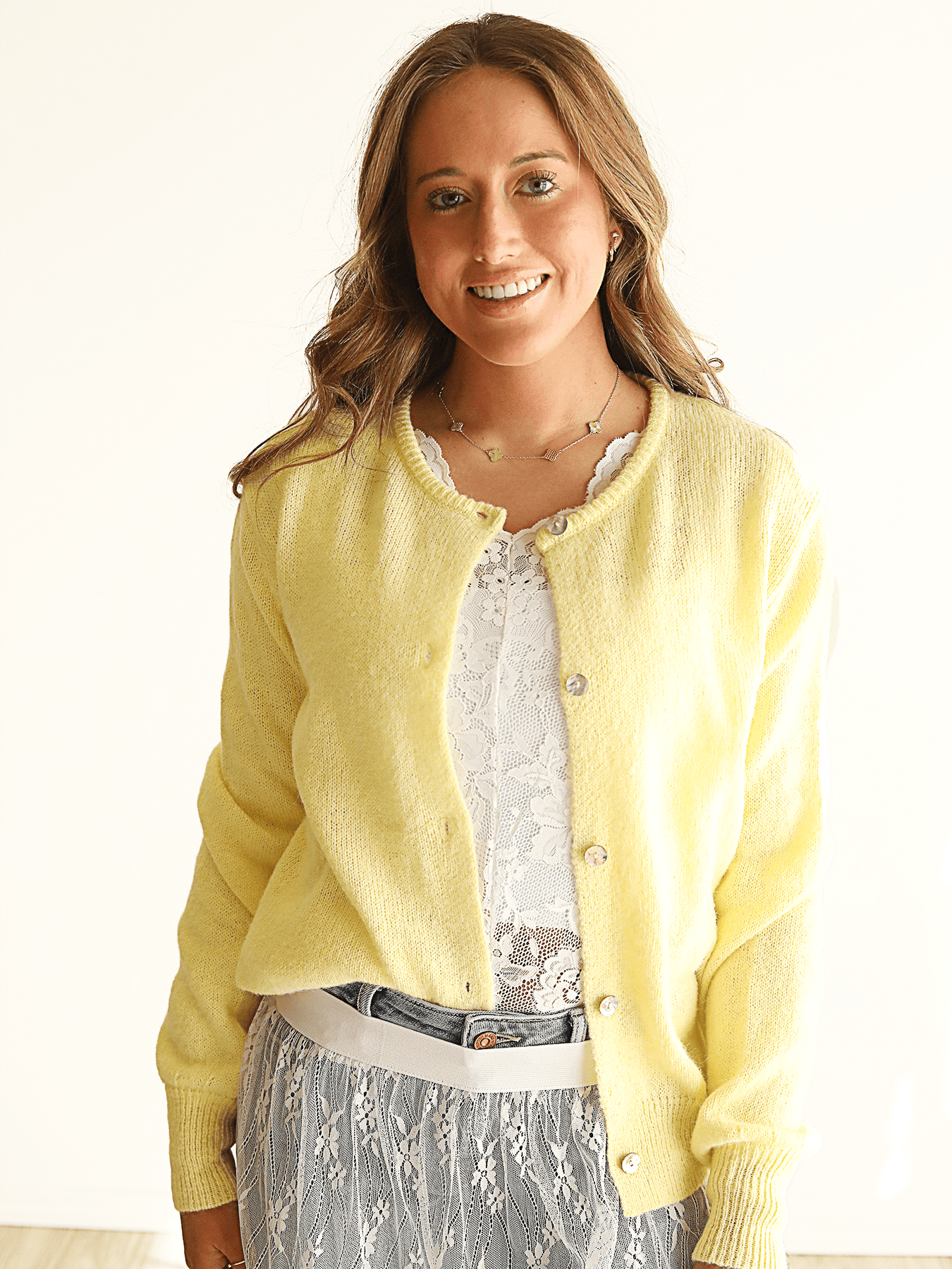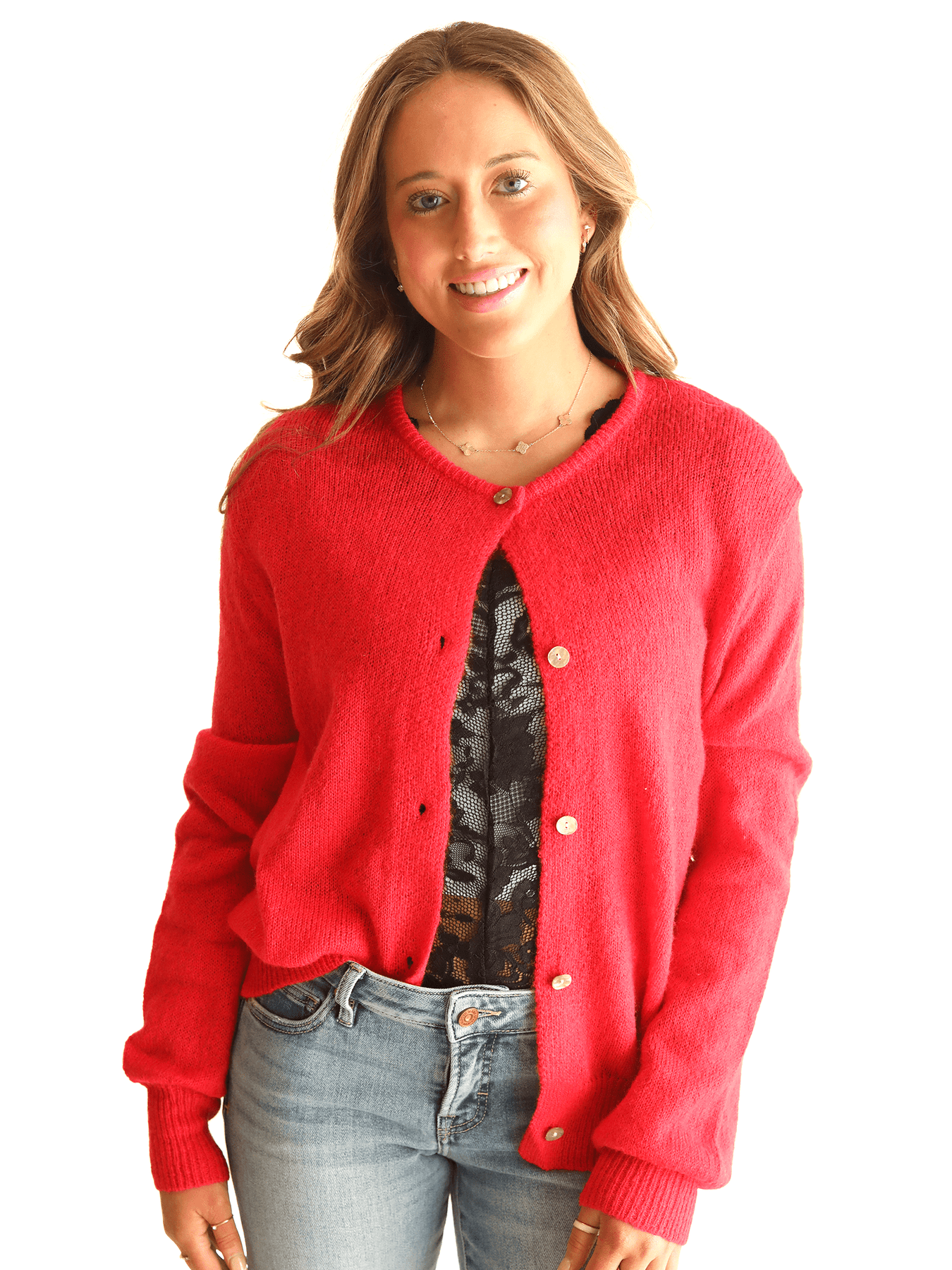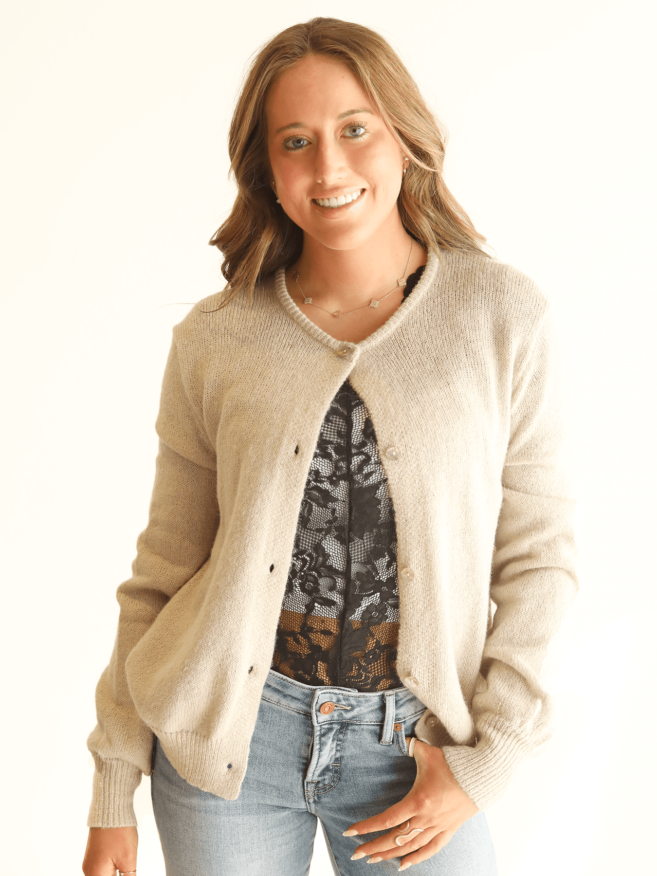 The Lioness Cardigan features a classic round neckline with a button-up front, making it a versatile layering piece for any season. Designed with a comfortable fit and soft knit feel, this cardigan is perfect for everyday wear—whether styled casually or dressed up.