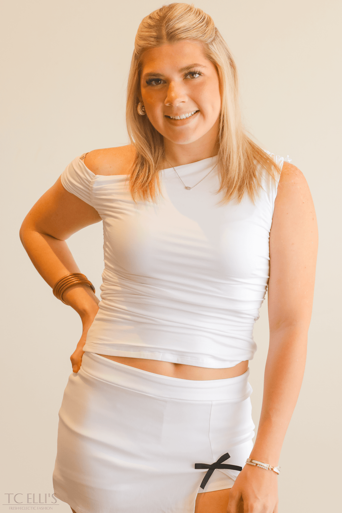 Make a bold statement with the She's a Stunner Top. Its asymmetrical design adds a fun twist to your wardrobe, keeping your look fresh and unexpected. Perfect for turning heads whether you're out with friends or owning the day, this top blends comfort with a cheeky edge that’s all about your unique style.