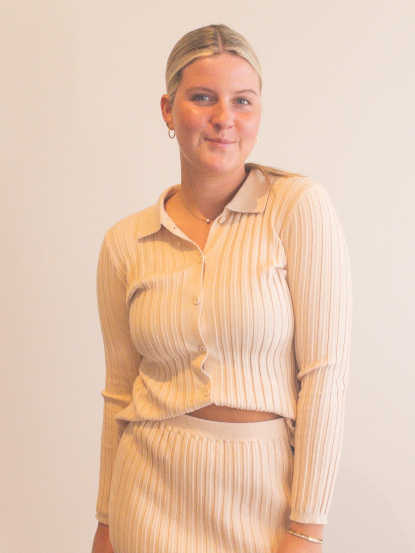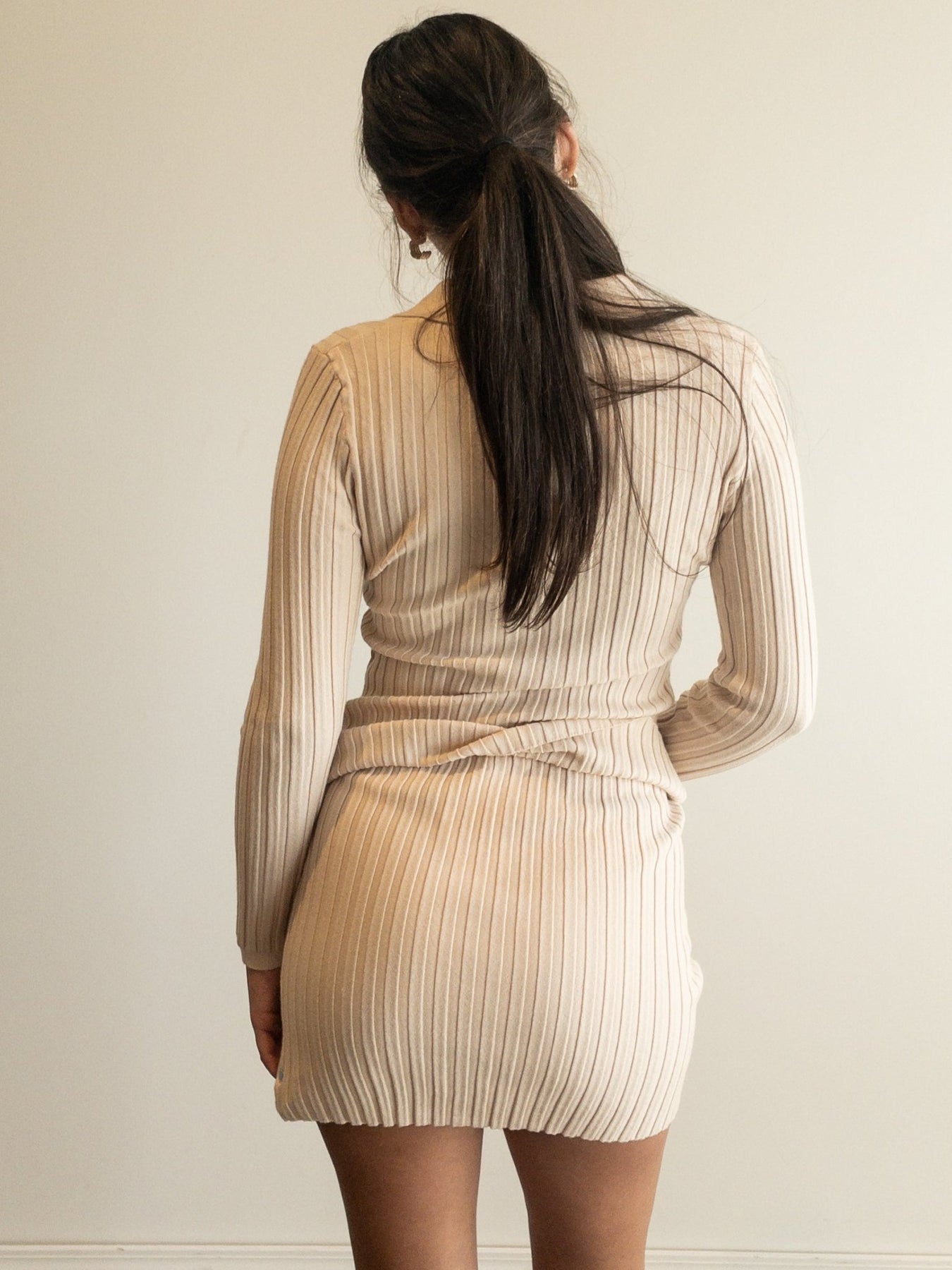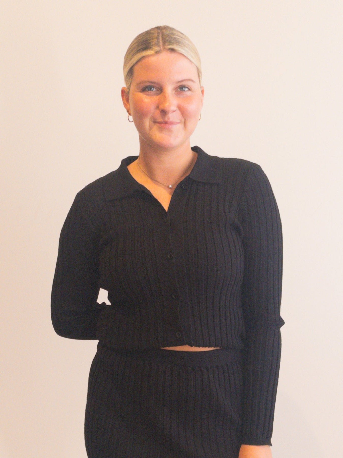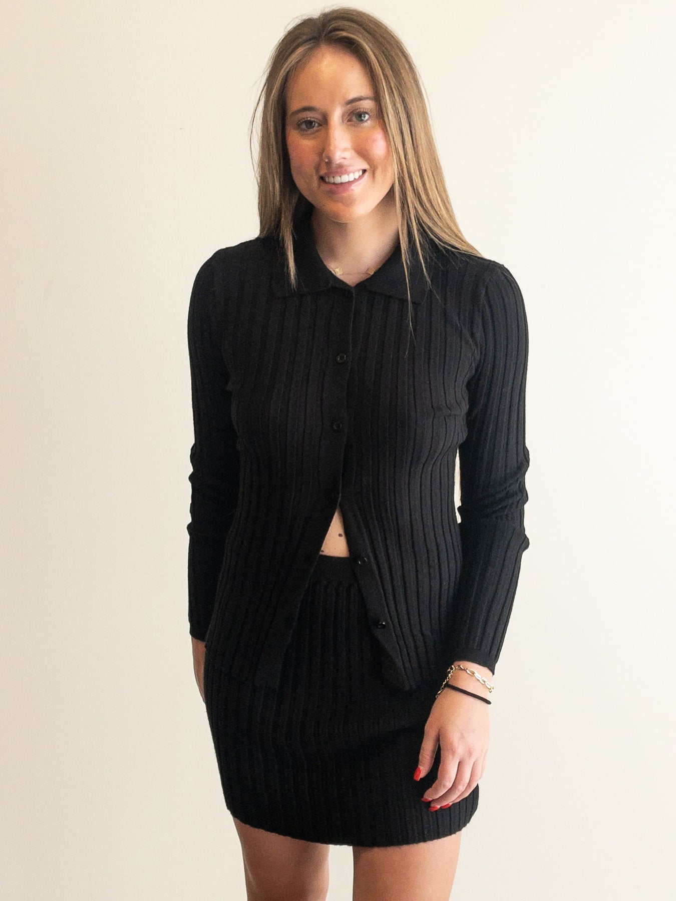 set with solid ribbed knit material