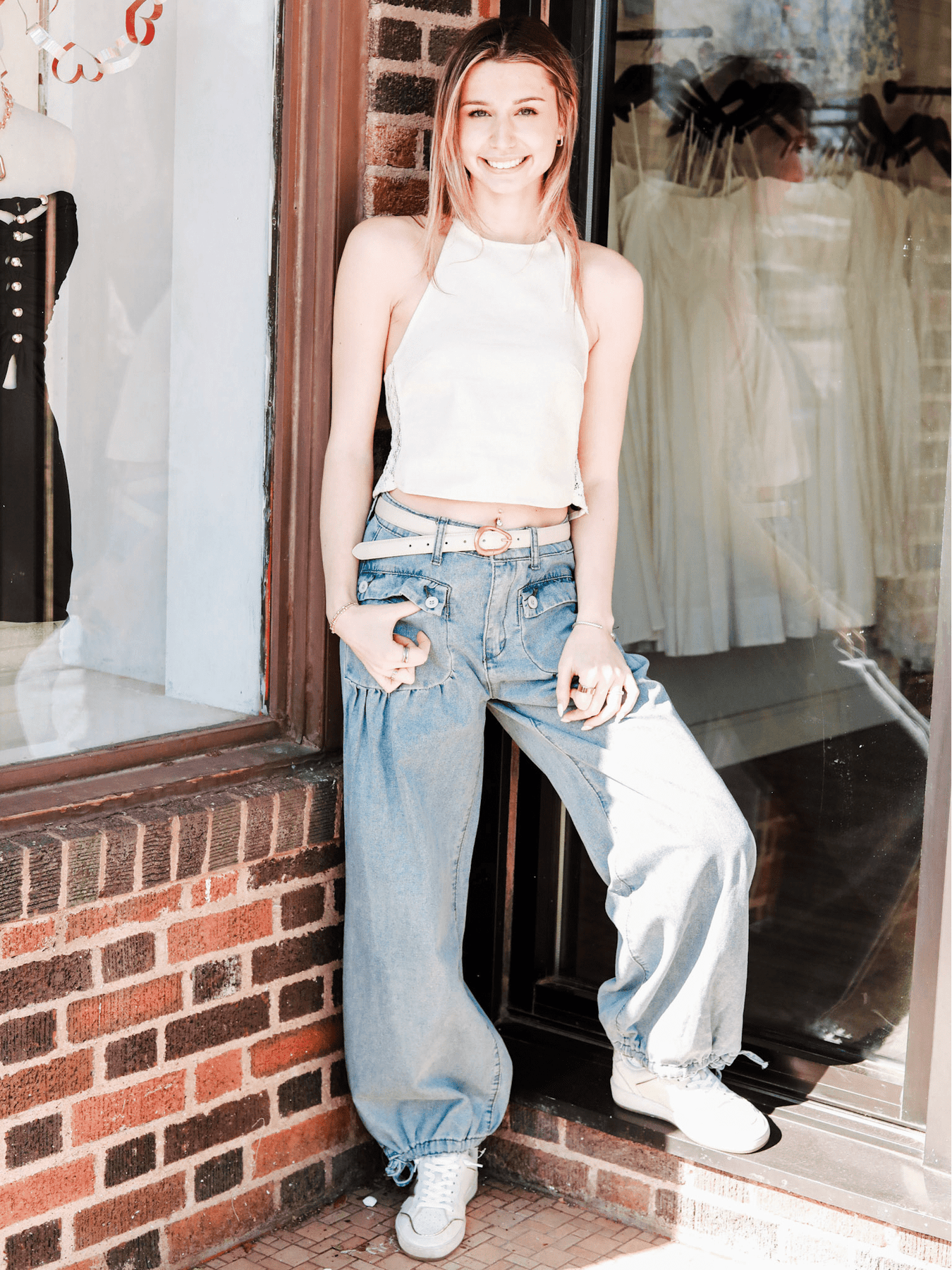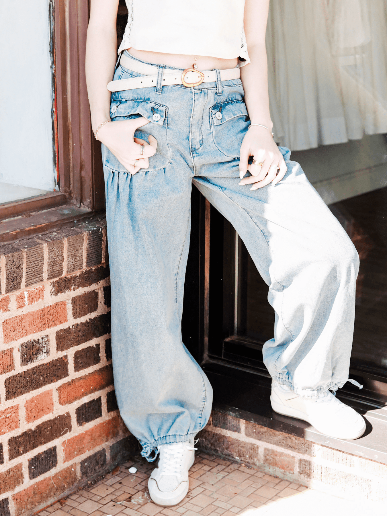 Set sail in style with the Ahoy Mate Pant, where classic denim meets a modern twist. Featuring a straight-leg silhouette and unique gathered cuff detailing, these jeans bring effortless comfort and subtle flair to your everyday wardrobe.