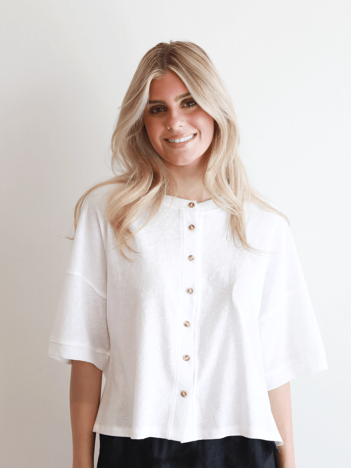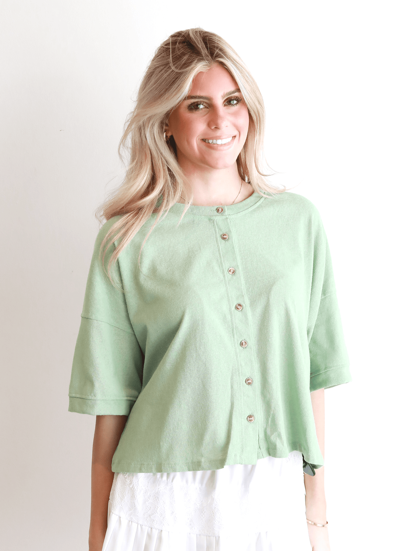 Embrace relaxed elegance with the Beach Walk Button Up Blouse, a versatile piece designed for effortless everyday style. Featuring a classic button-up front and midi-length sleeves, this blouse offers a polished yet laid-back look that transitions seamlessly from casual days to relaxed evenings.